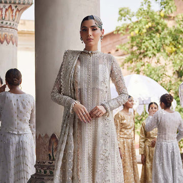 An ethereal grey ensemble with delicate silver embellishments. Perfectly crafted to exude sophistication and refined charm for grand occasions.