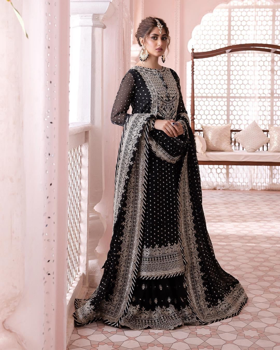 Shirt: ChiffonBy Pcs: 3 PcsDupatta: ChiffonColor: BlackLehenga: Cotton silk Discover the secrets of the “Chandni Collection”, as Sajal Aly showcases...