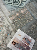 For those who love to wear pastel colours, along with a startle look, “Rimel” is the perfect design for you. This elegant dress features an organza base, delicately rendered floral motifs with jewel like neckline pattern on a hues of ferozi and pink. It is paired with double toned tranquil laser dupatta and crushed pants.