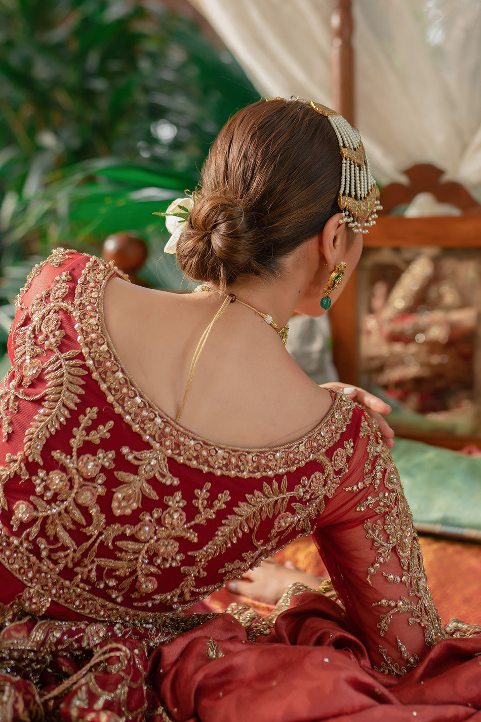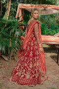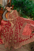 A majestic, classic beauty playing with the coveted AMMARA KHAN red, mixed with a burnt rust tone and hints of a dull 'chai pink' to create this masterpiece. Entirely worked in 'zardozi' with delicate French knots, it tells a tale of wild garden florals. Perfect for a modern 'maharani' aura. Exquisite and grand this piece is purely magical.