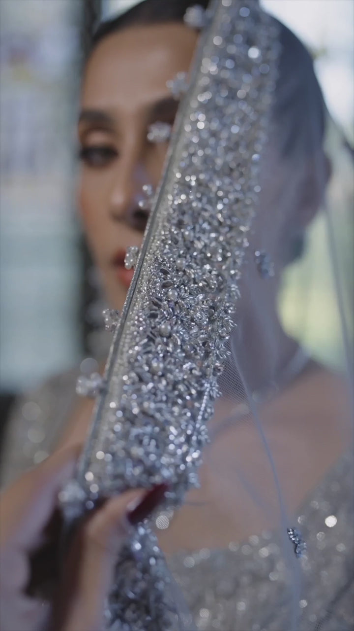 • Hand embellished net dupatta