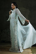 A symphony of elegance and opulence. This stunning design features a meticulously embroidered net shirt, complemented by luxurious raw silk trousers. Paired with a diaphanous organza dupatta adorned with intricate embellishments, Iris exudes sophistication and charm. The perfect choice for making a bold yet graceful statement this season.