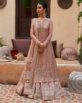 Embrace feminine elegance with the Zeena ensemble. This stunning pink set features a knee-length kameez and sharara, adorned with intricate pearl, naqshi, and dabka embroidery. The embroidered net dupatta adds a touch of sophistication.